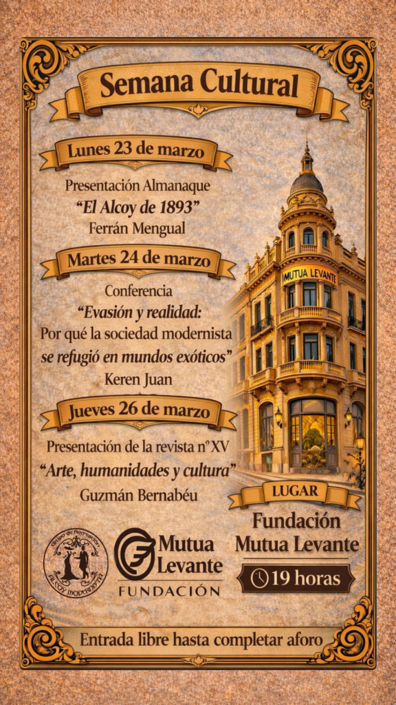 El viernes 15 de marzo de 2024 a las 19:00horas, tuvo lugar el La Fundación Mutua de Levante, la presentación del numero XI de nuestra revista Arte, Humanidades y Cultura, el acto, presidido por el presidente de Alcoy Modernista, contó con la presencia de los articulistas que han colaborado en este numero.